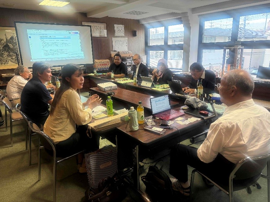 2025年9月 インドネシアのパーム油産業の持続可能を目指す協議会の幹部のボゴール農科大学の先生方3名が1週間当社へ来社し、当社のオイルパーム樹幹を活用する技術を視察のために1週間滞在し学んでいただいた。