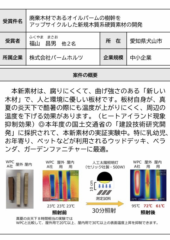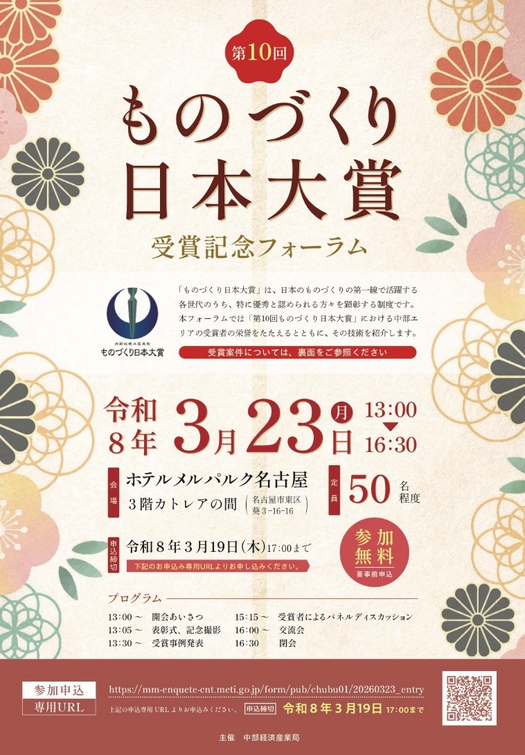 2026年3月23日 「第10回ものづくり日本大賞 中部経済産業局長賞」を受賞した。全国22件111名で中部では4件19名で当社では3名が受賞した。